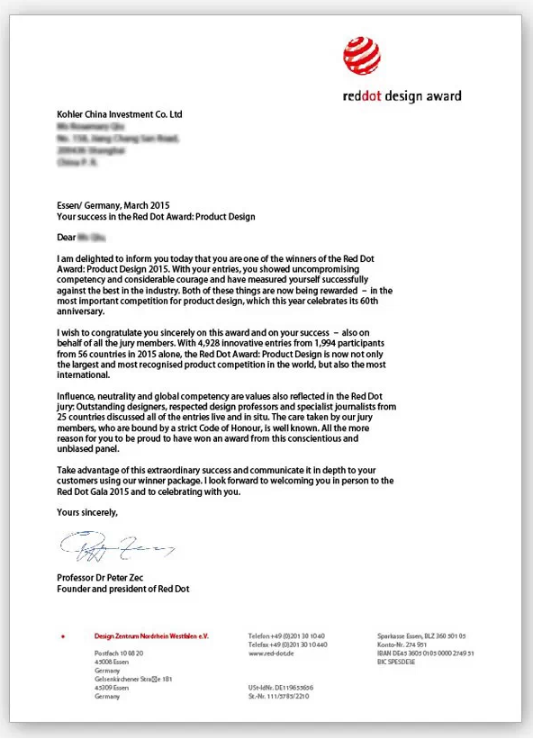 2015年,科勒凭四款厨卫产品双奖傍身,其中清舒宝智能坐便盖Bidet seat C3-150荣获iF设计奖,柏诗Composed、艾非Avid荣获红点奖,进一步展现了科勒在工艺设计上的不断创新、追求^,以及^厨卫潮流的品牌实力。