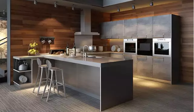 单就不同风格的整体橱柜所使用的材质上