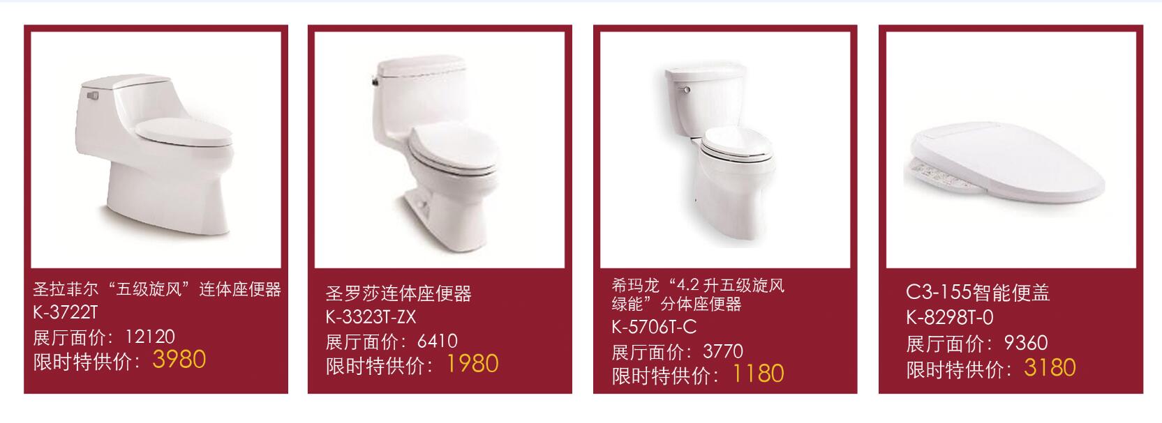 购买科勒座厕送DK-8726安装件,并送橱柜抵用券500元,购买科勒整体橱柜即可全额抵用,当天下定橱柜,仅需定金5000元,即可享受橱柜六城联动活动,且当天下定橱柜的客户均可加399元换购K-96024T-PF100-Q73科勒中央前置过滤器陶比 100-基本款一台。