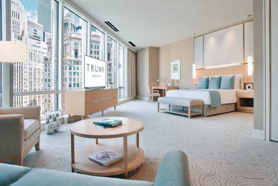 作为美国总统唐纳德·特朗普这位著名的地产大亨名下的产业,芝加哥特朗普国际大厦酒店坐落在芝加哥^繁华地段的特朗普国际大厦之中。一直坚持浮夸奢华风格的特朗普,对自己的酒店也始终要求舒奢至上。