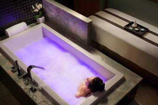 源SPA水疗中心装饰采用纯正且不失现代时尚的中国风格,给人以摩登别致的感官享受。沐浴在“水·乐”世界中,水上迷人音乐环绕水面,水下音波带动水波震动,享受水乐交织带来的双重欢畅,身体在顷刻间重获新生。用一场欢愉的自净,找回初心。